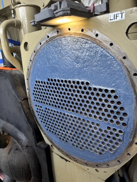 Problem: The customer was experiencing severe internal corrosion in the heat exchanger’s tube sheets, covers, and water box. Oxidation had caused metal loss, flaking, and surface degradation, threatening the unit’s structural integrity and performance. There was concern about potential leakage and the high cost of replacement.