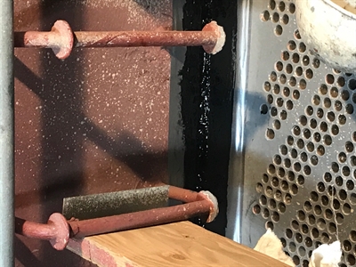 Closeup of Belzona 2111 elastomer expansion joint in main condenser