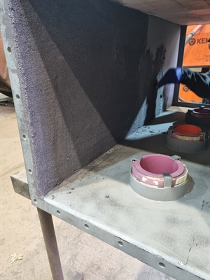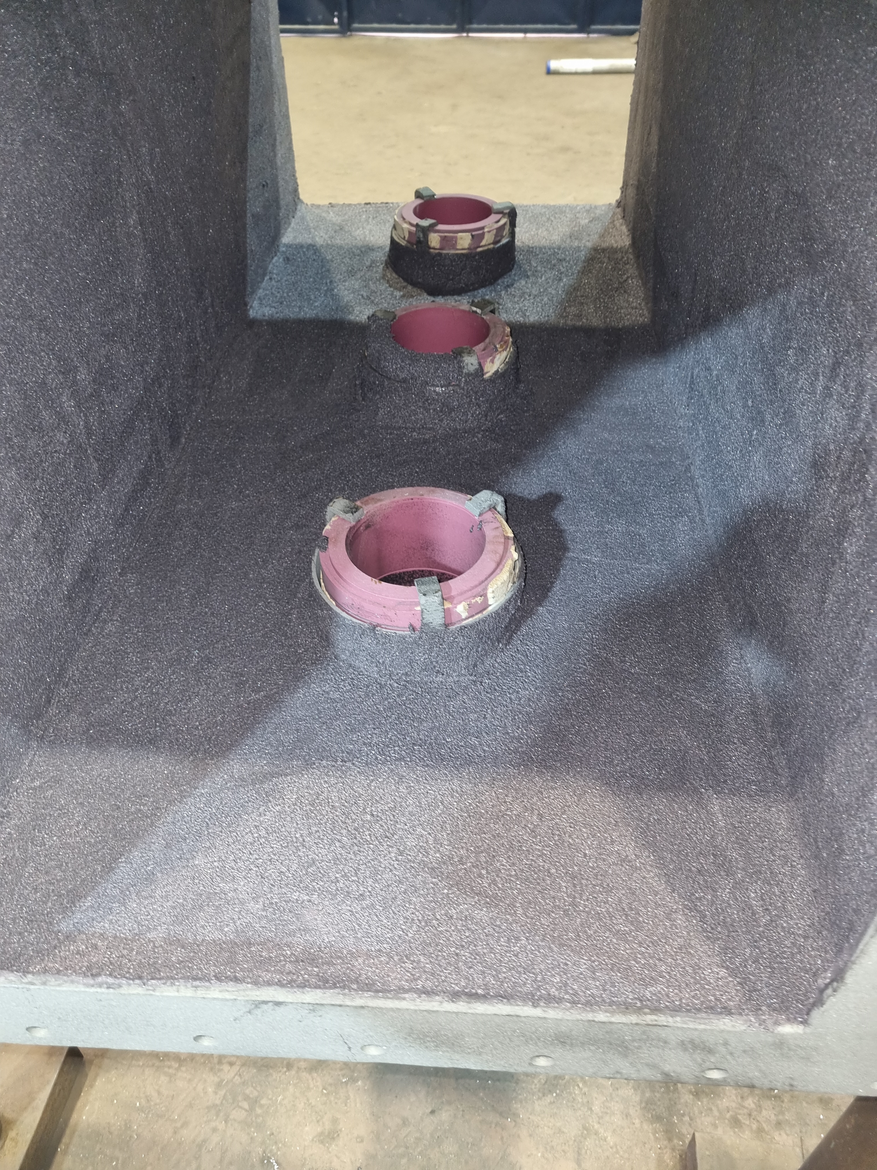 Application of Belzona 1812 on side openings, using mixing bowl as a former.