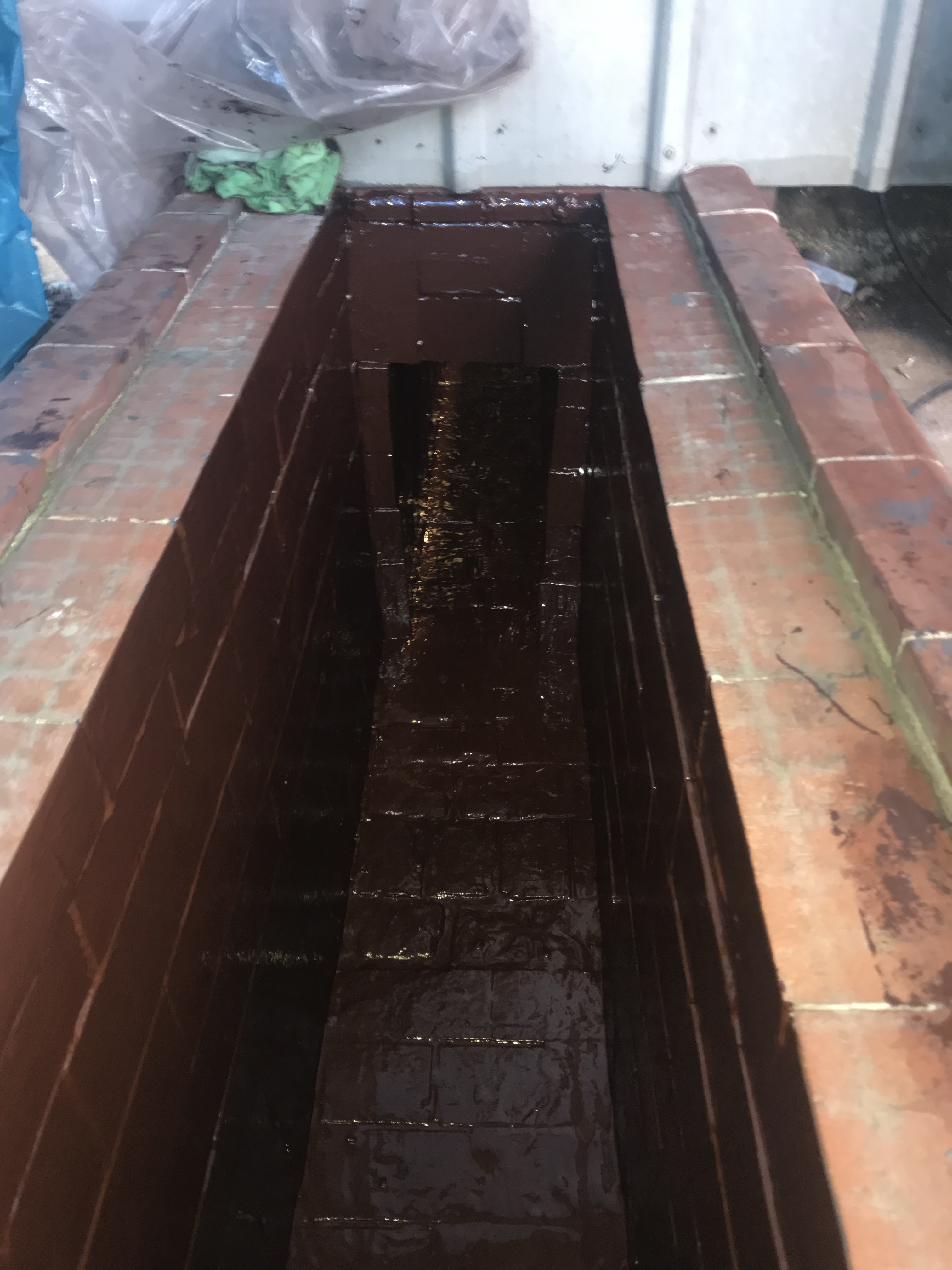 Problem: A trough handling spillage from a line of 10 chemical tanks would empty into a sump, creating a cocktail of various harsh chemicals. The sump was found to be leaking and urgent action was needed to contain and properly manage the waste.