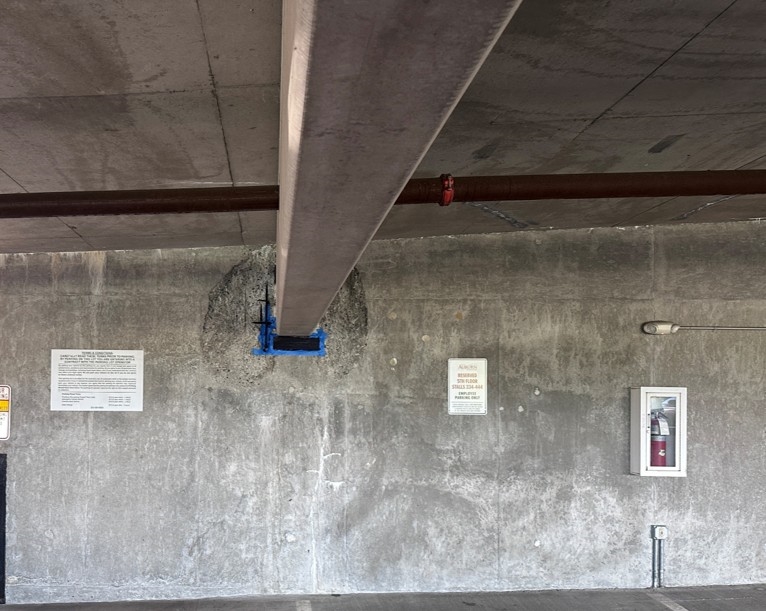 The customer required a repair solution that could restore the deteriorated concrete wall quickly and with minimal disruption to the parking facility's daily operations. Traditional repair methods such as demolition and repour or shotcrete application would have required extensive formwork, longer cure times, and significant disruption to the surrounding.