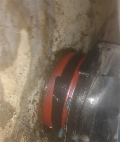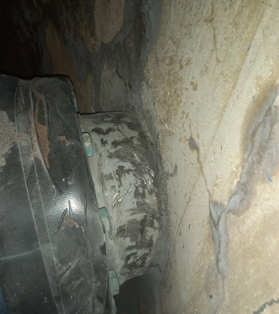 The leaking spool was built into the concrete sump wall - this went directly out to the reservoir.