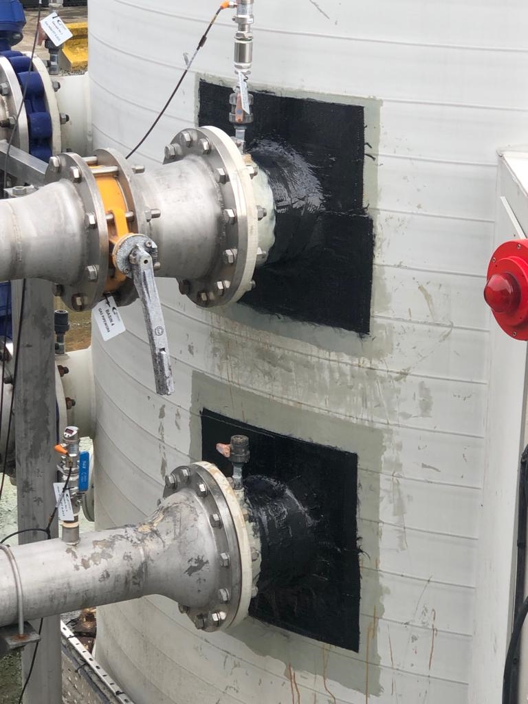 Problem: A plastic tank had developed several cracks around pipes. A replacement was planned but to get production through to that point a temporary fix was requested.