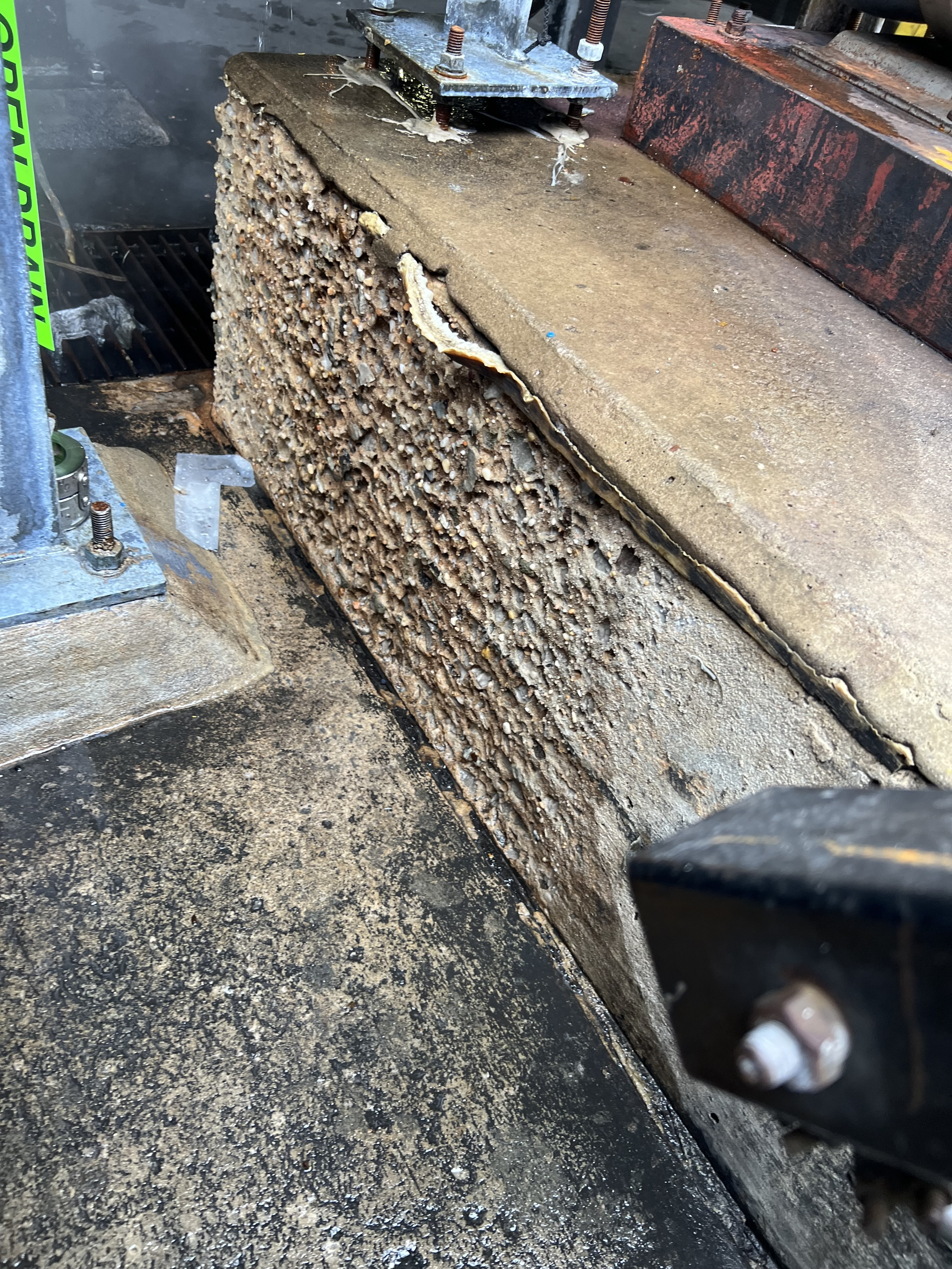 Problem: The concrete pump base had water running over it for several years due to constant water running over the pump to keep it from over heating. The water had been eroding the concrete for many years. They were facing the replacement of two pump bases.