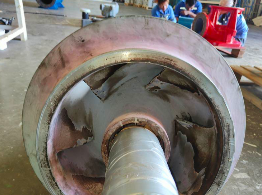Damage to the impeller caused by erosion and corrosion.