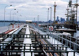 Fünf verschiedene Produkt- und Anschlusspipelines mit unterschiedlichen Durchmessern in einem Ölterminal.