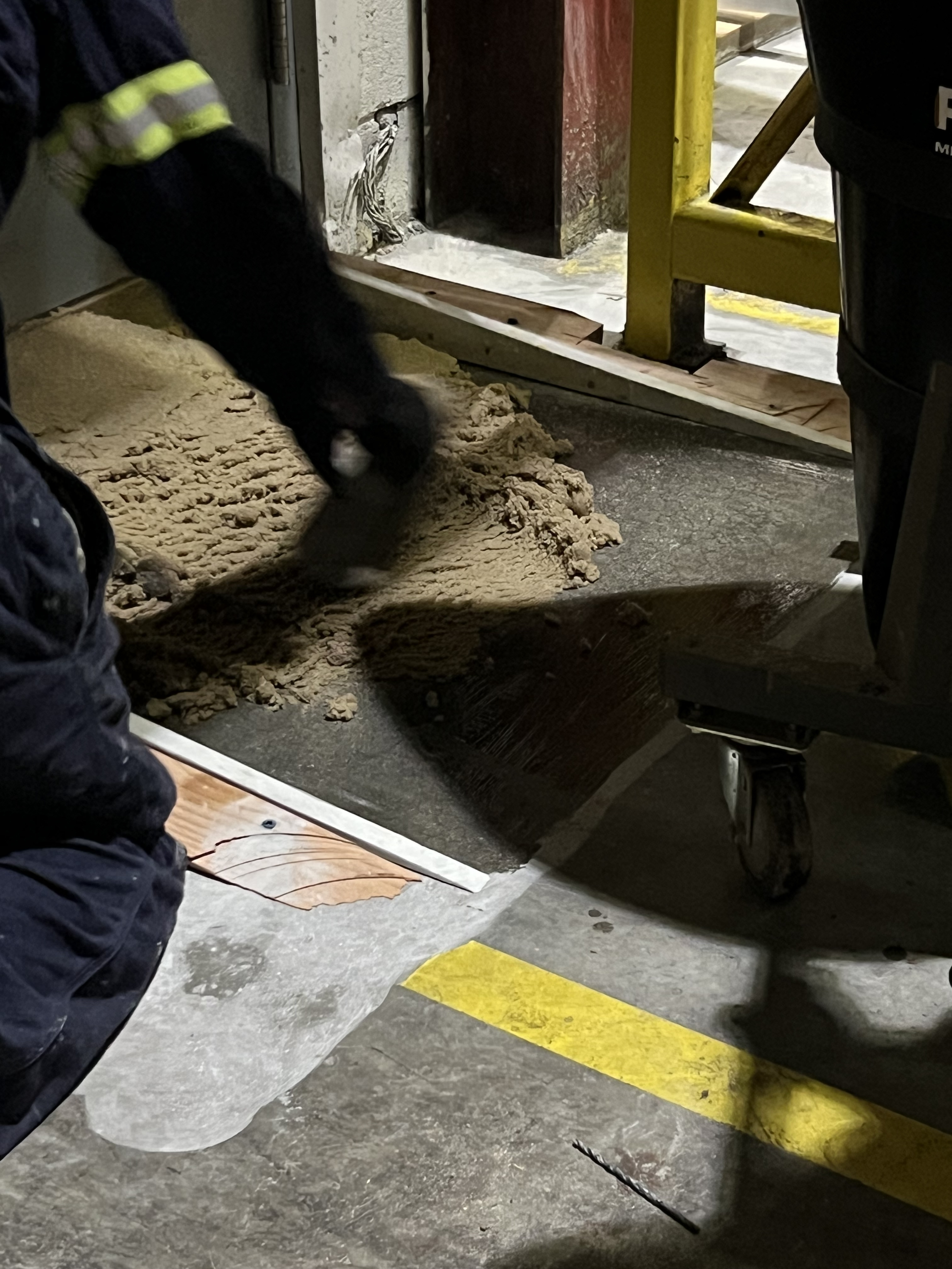 Problem: This area was a storage facility that 3M turned into a chemical storage facility. There was no curbing in the doorways to protect and spillage from flowing out of the building.
