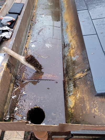 Particular attention was paid to the lower end of the gutter where the downpipe was situated.