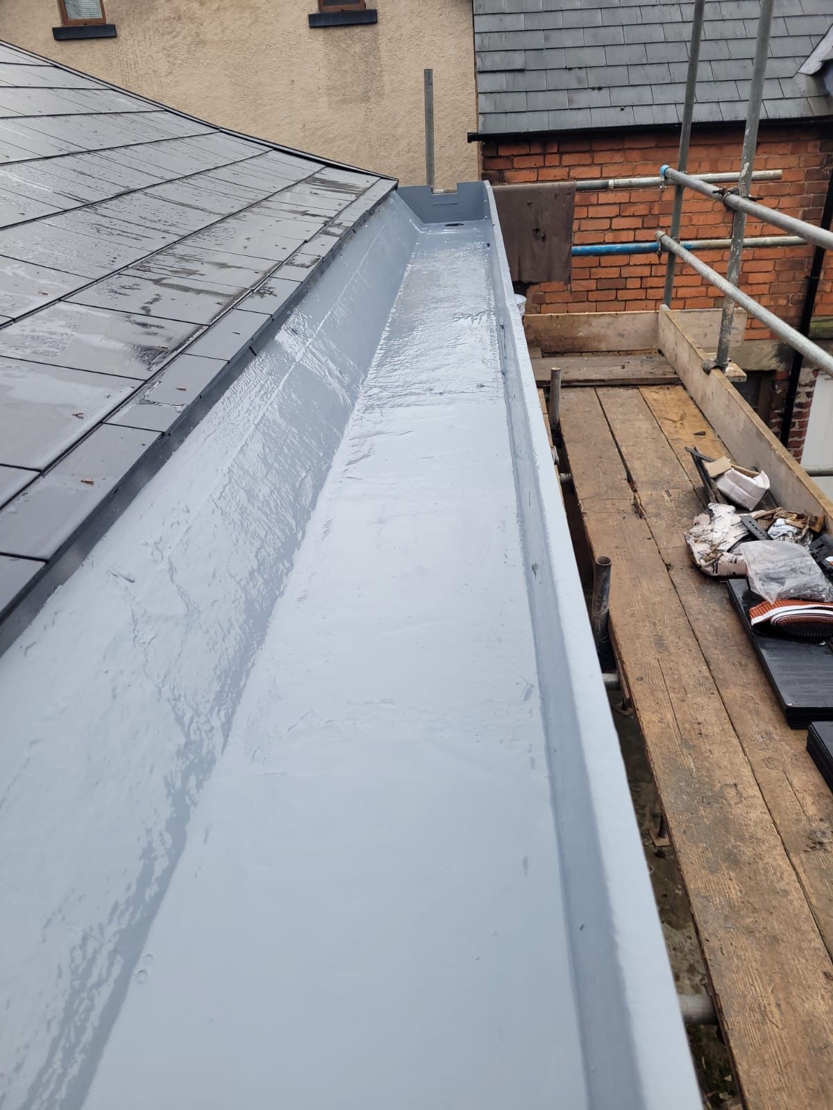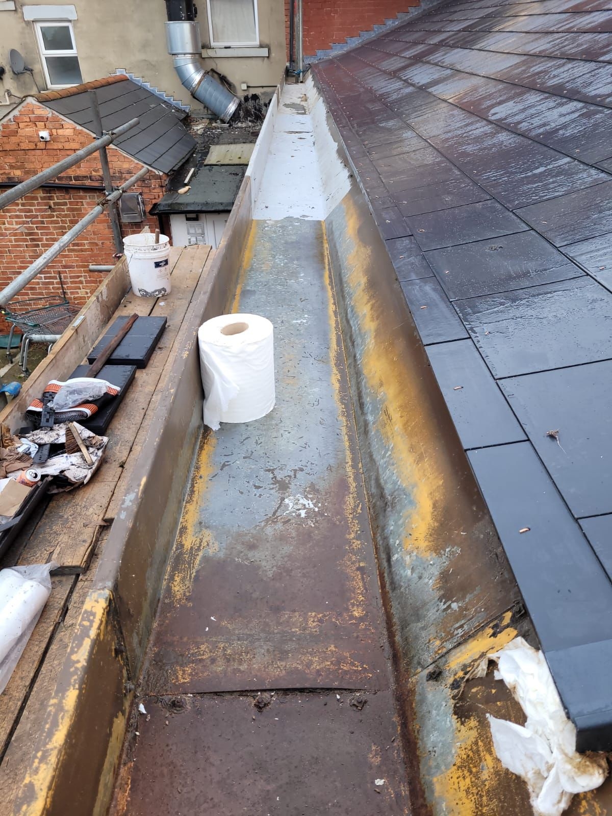 Relining to rear gutter of High Street premises with Belzona
