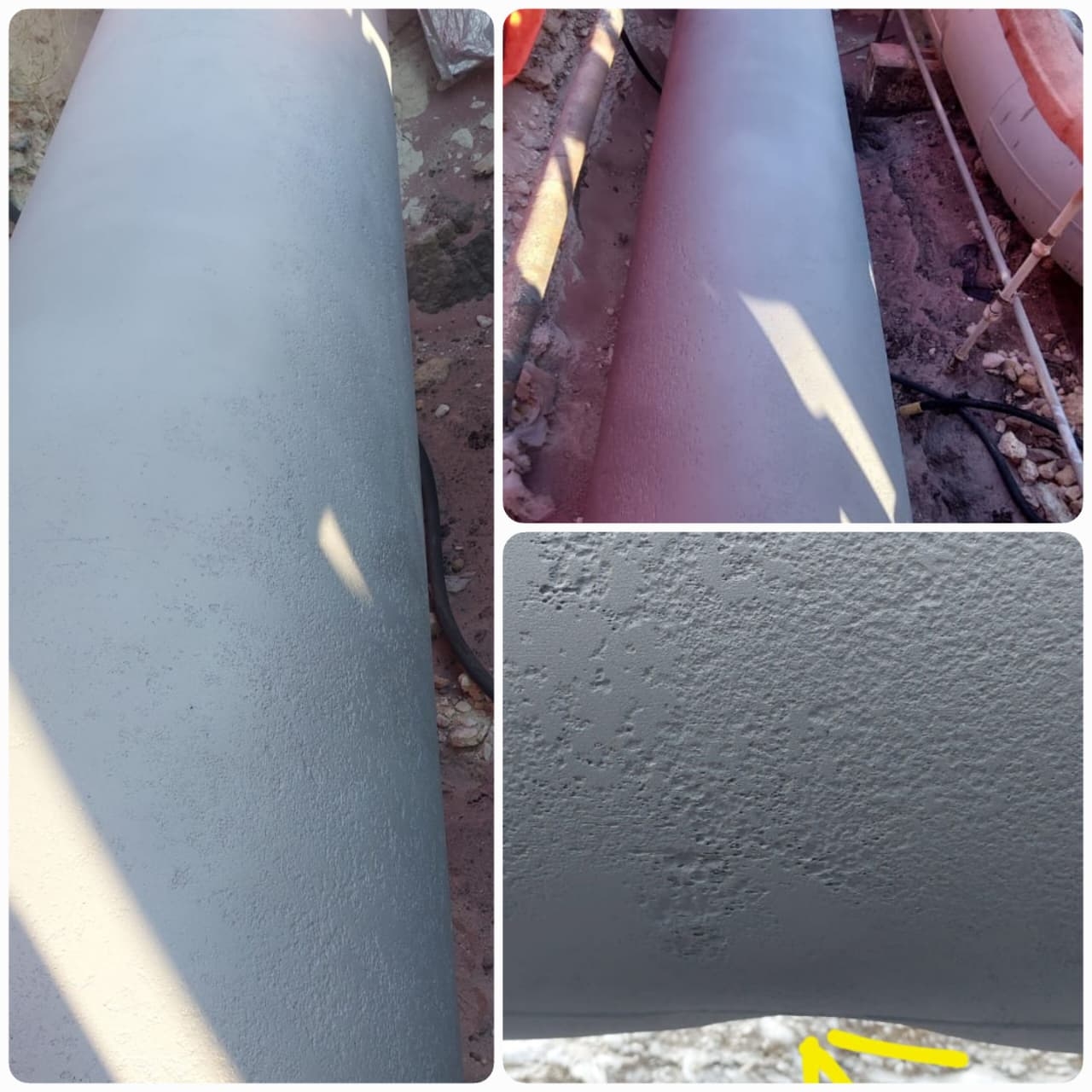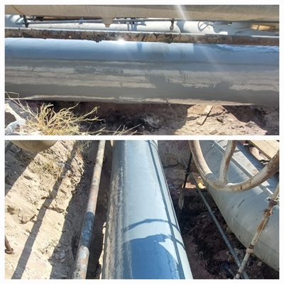 The pipeline was first shut down, and all oil residues were thoroughly cleaned from the external surface. The pinhole area was sealed using Belzona 9611 (ES-Metal) and Belzona 1221 (Super E-Metal) to prevent oil sludge flow under high ambient temperatures (35°C).