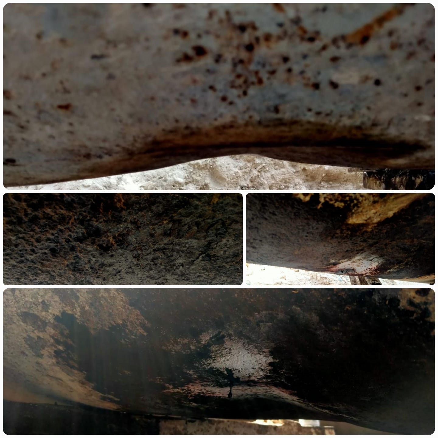 Problem: Severe external corrosion, combined with continuous loading from the support structure, caused structural deformation and the formation of a pinhole leak in a 36 inch crude oil pipeline operating at ambient temperature and 4 bar pressure. Approximately 5 meters of the pipeline experienced significant wall-thickness loss, posing a high risk to operational safety and continuity.