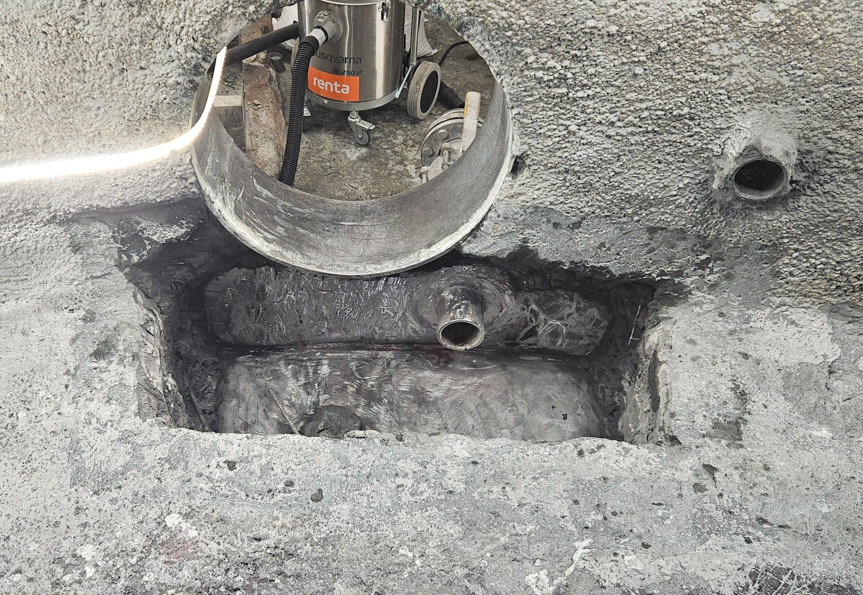 Here you can see the outlet and the bottom of the cistern after water jetting