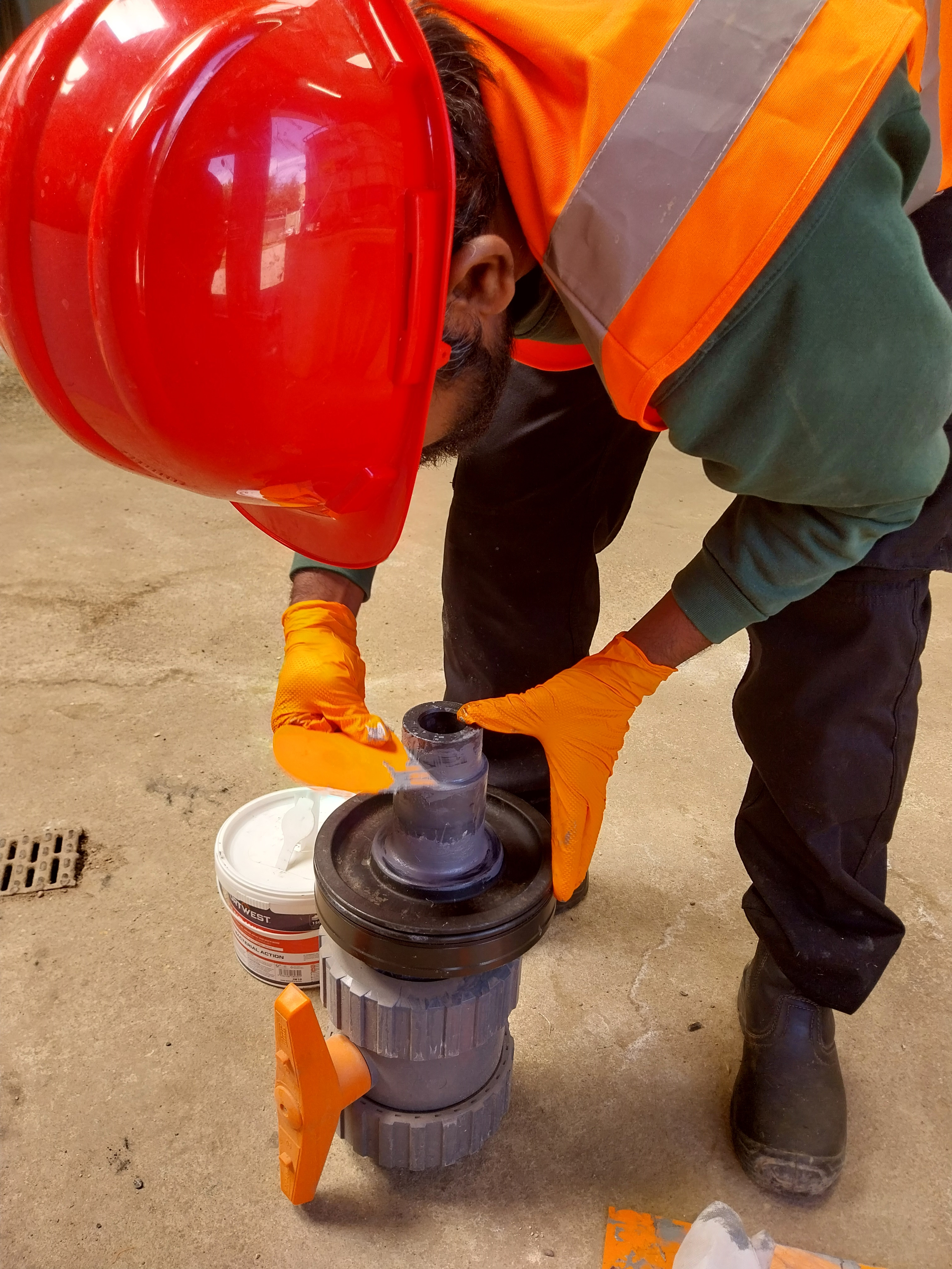 The Belzona engineer was shown the end caps and immediately offered help, donning overalls and safety PPE to carry out the repair alongside one of the site's staff, in order to train him up at the same time as offering a repair