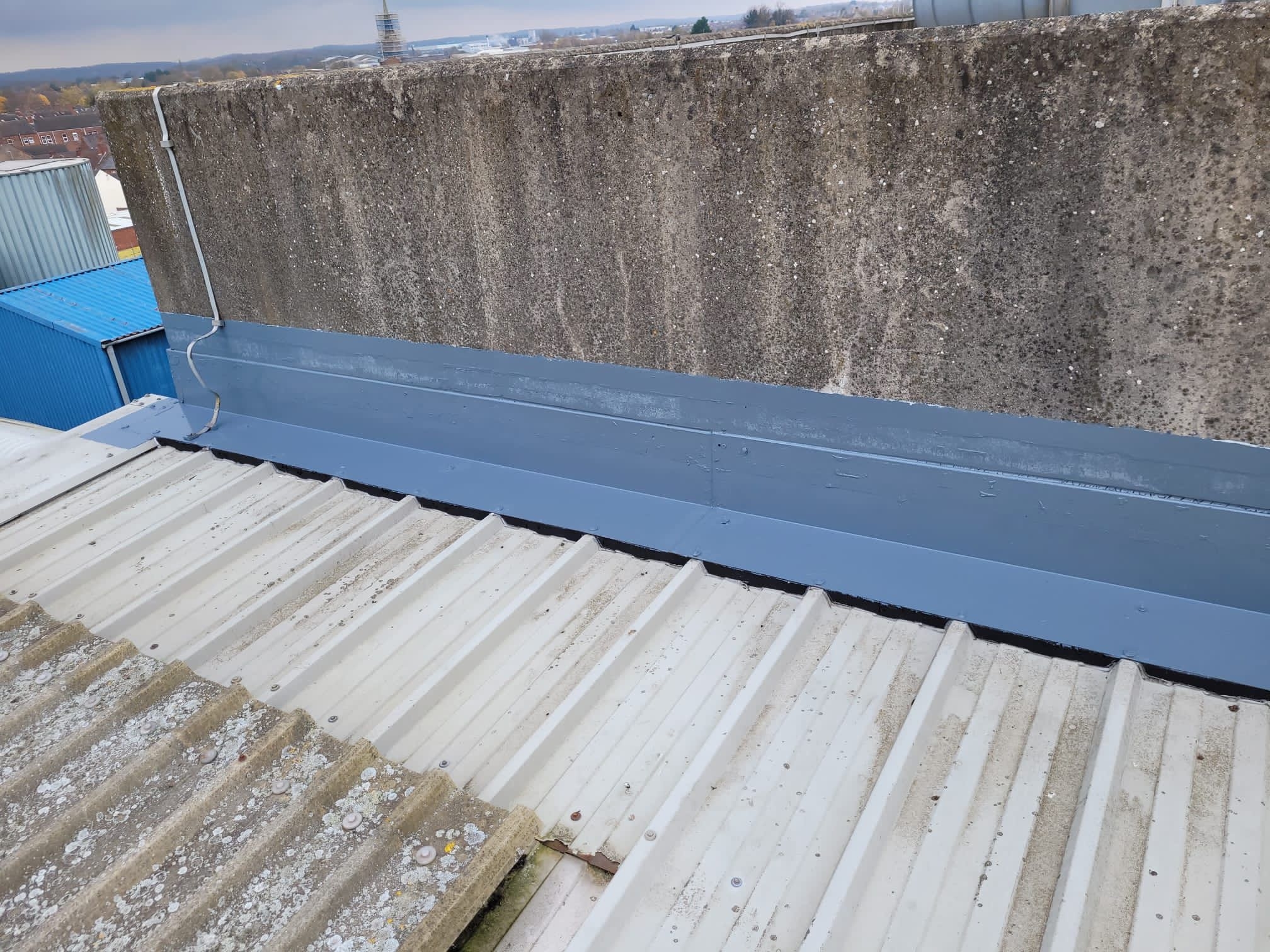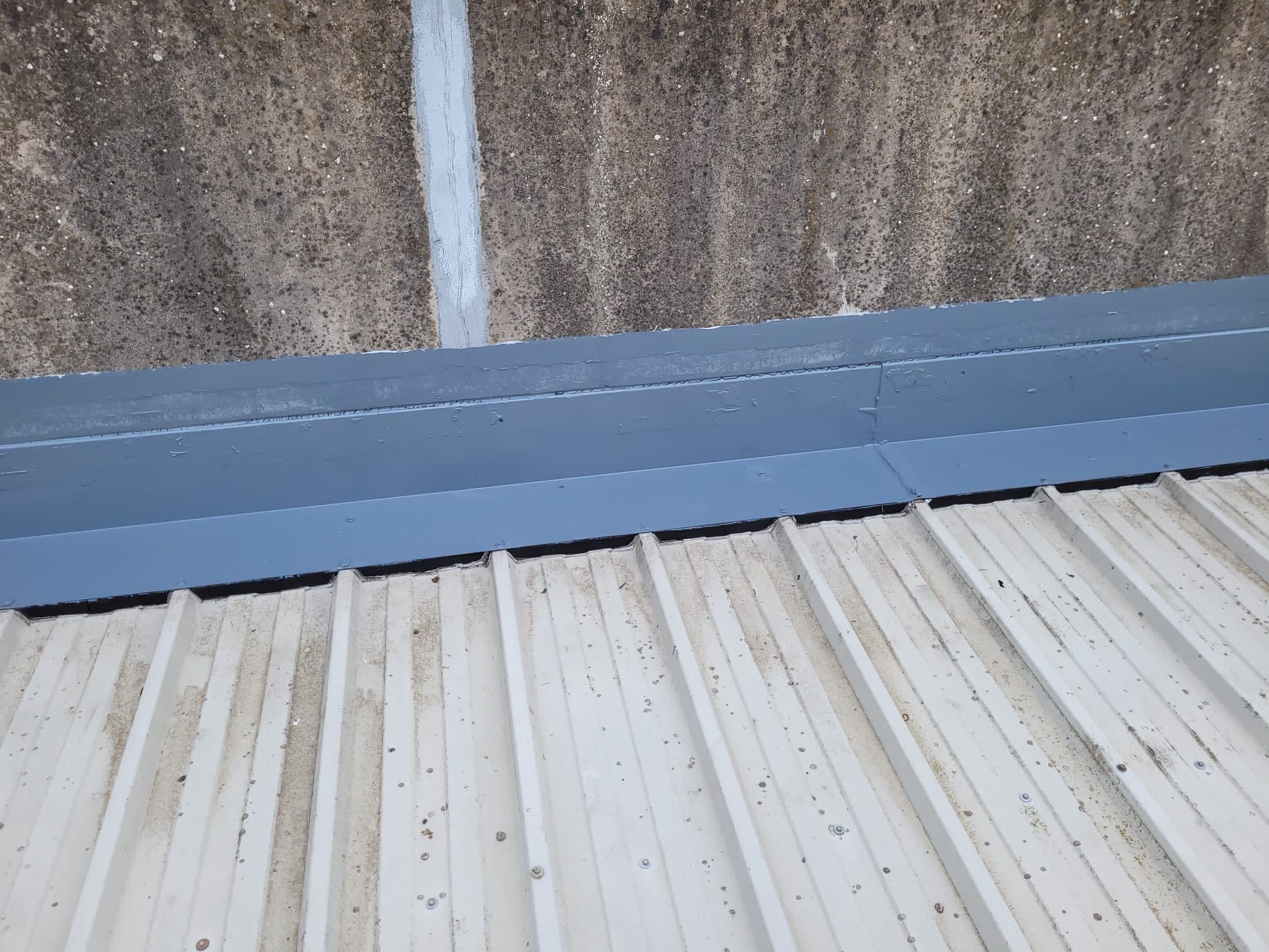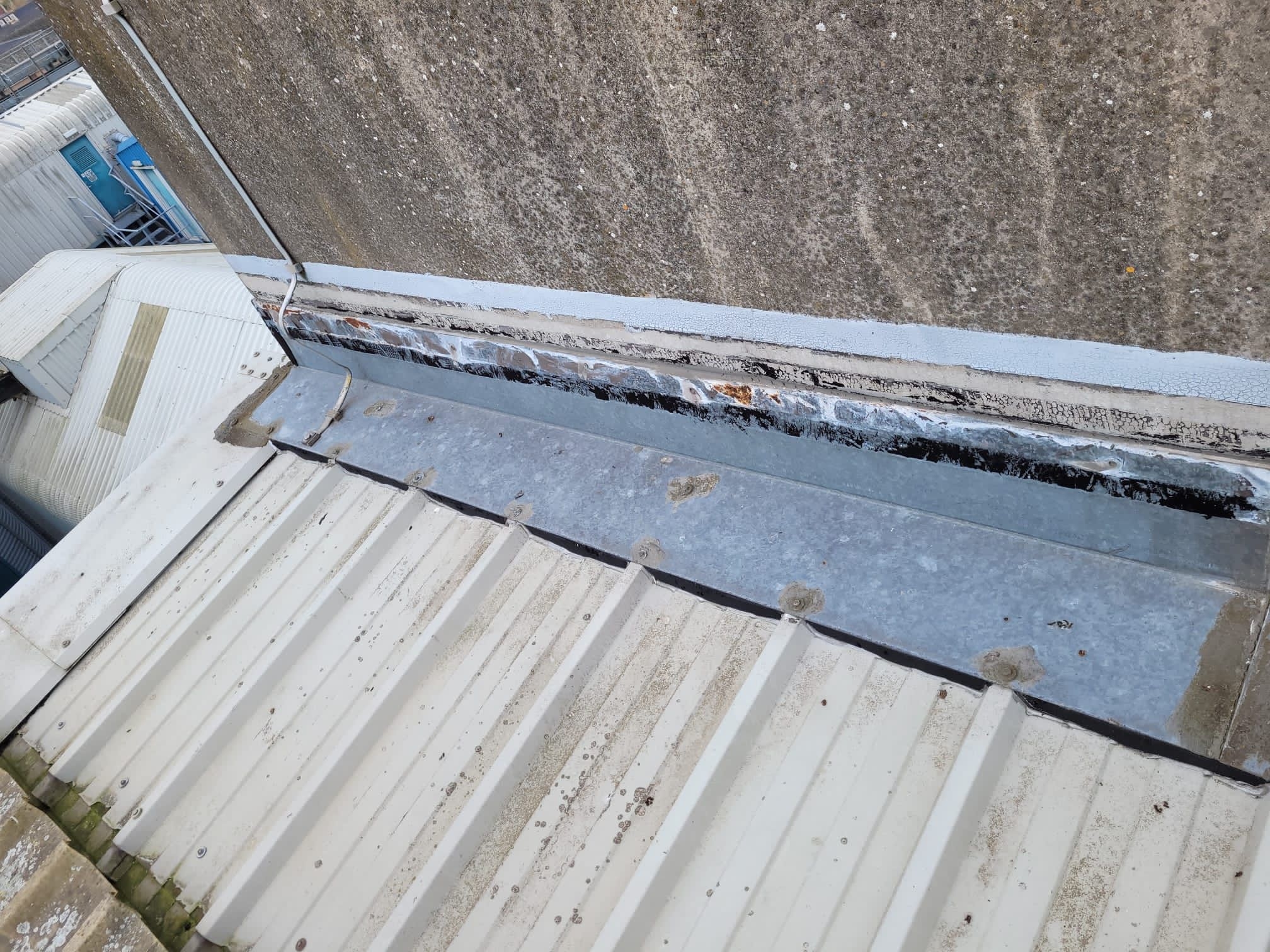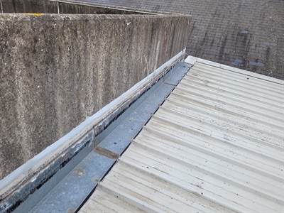 Problem: A roof flashing had become detached from the concrete side wall, leading to water ingress issues between the roof and the side concrete structure.