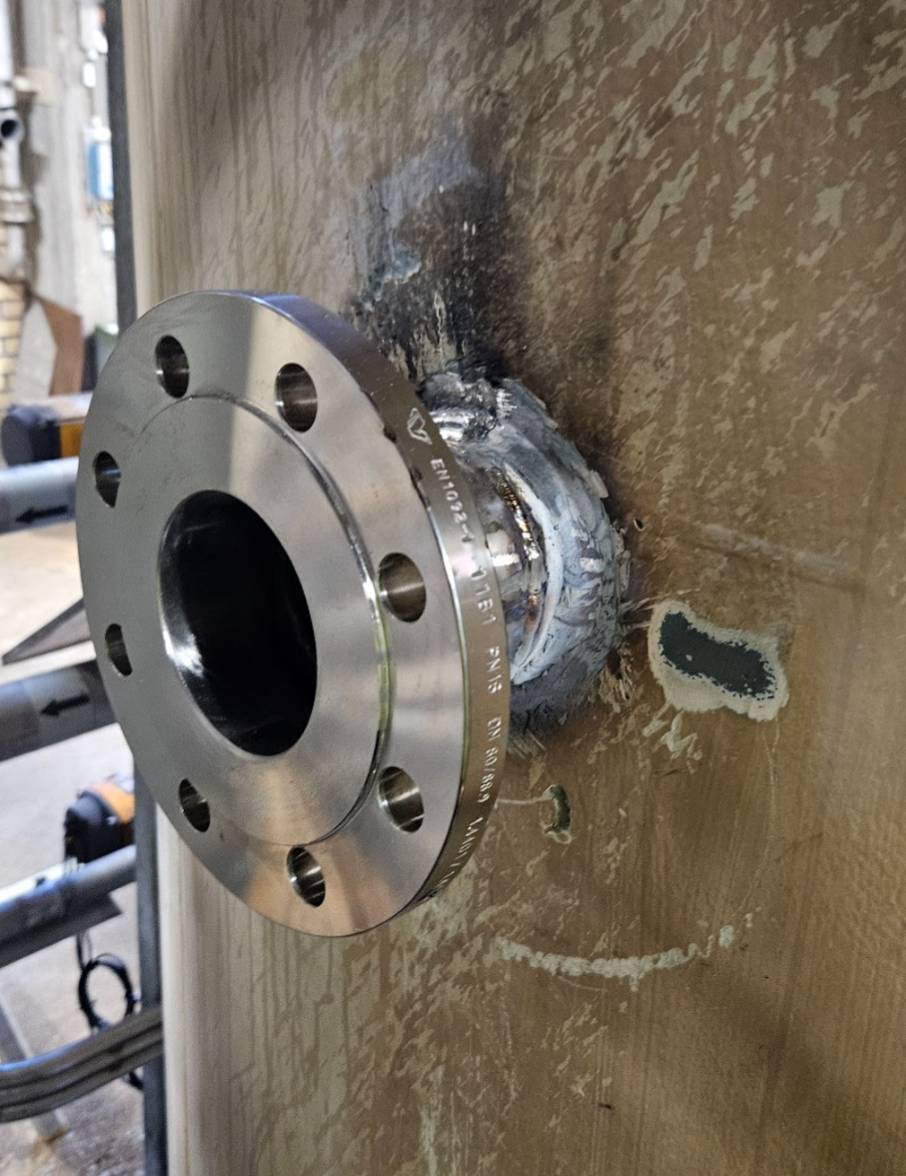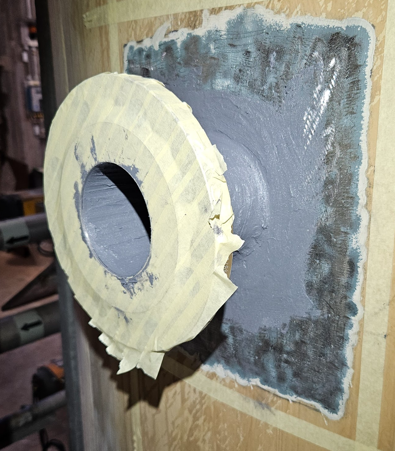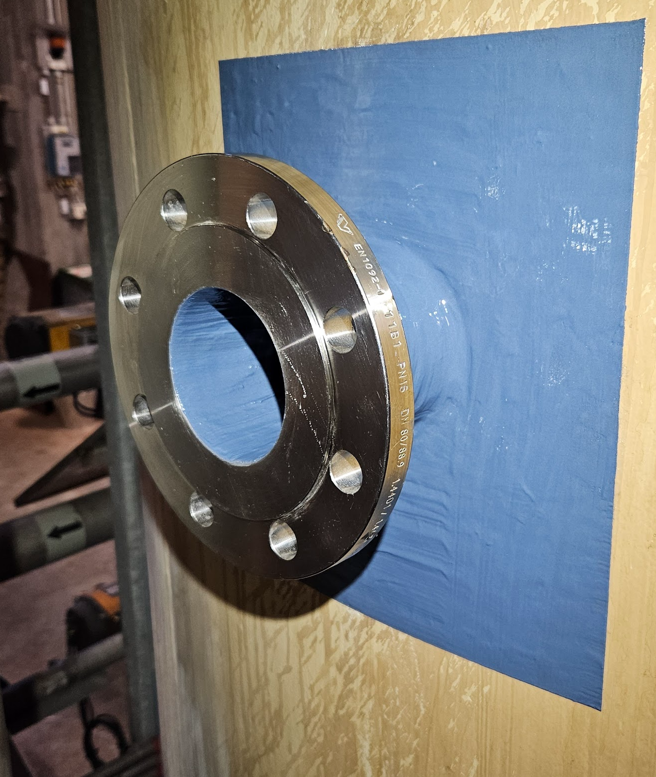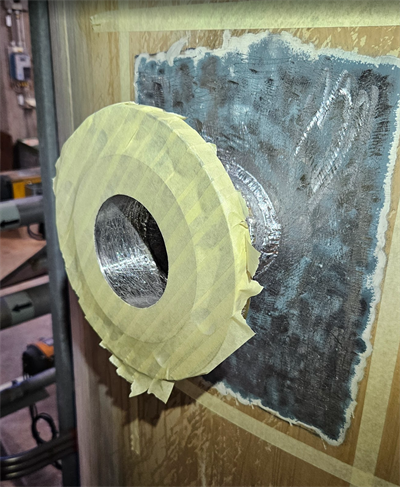 Grouted surfaces with Belzona 1161 to seal around the new weld