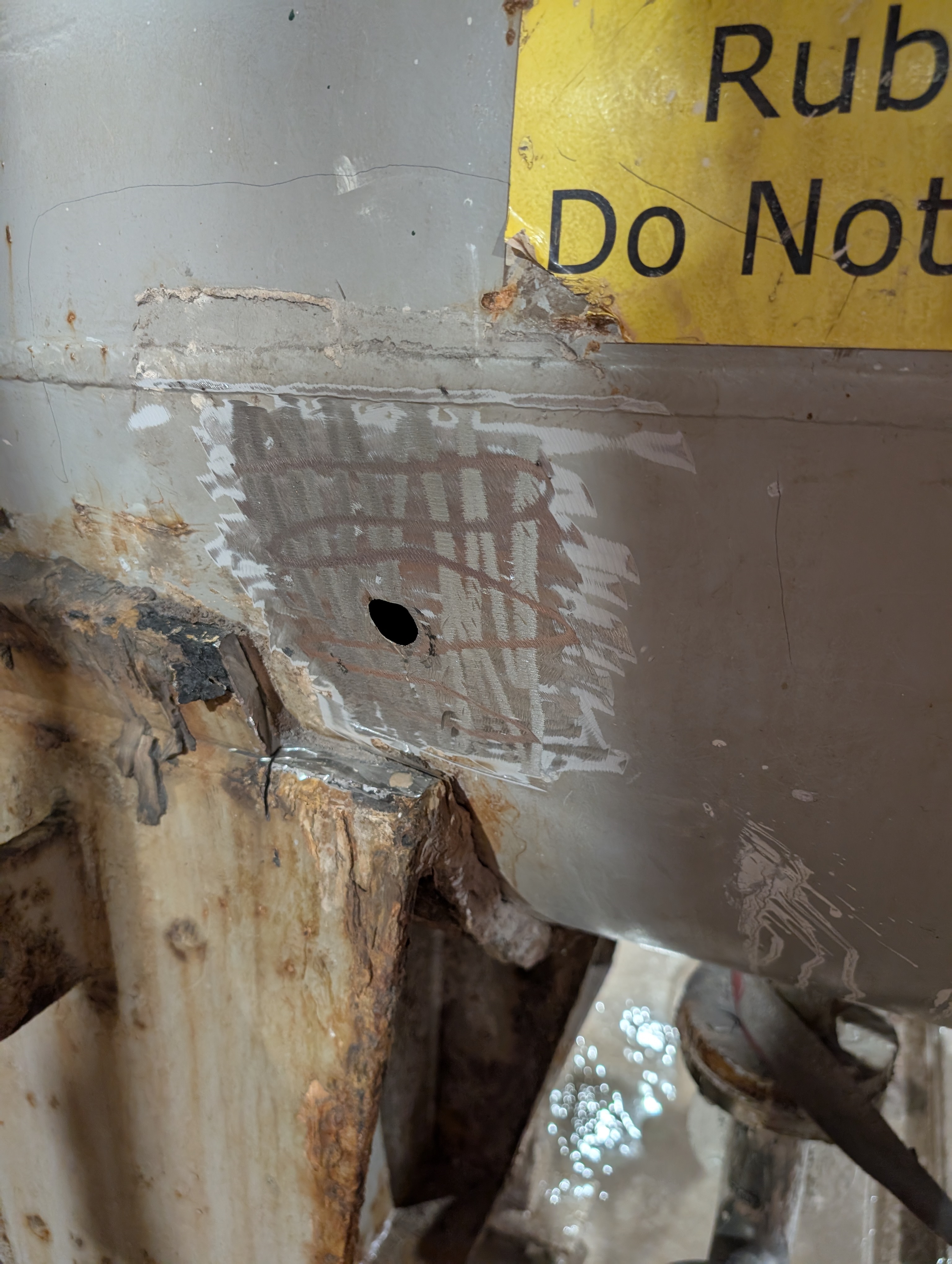 Alternatives: Welded patch or pipe replacement (not feasible due to rubber lining)