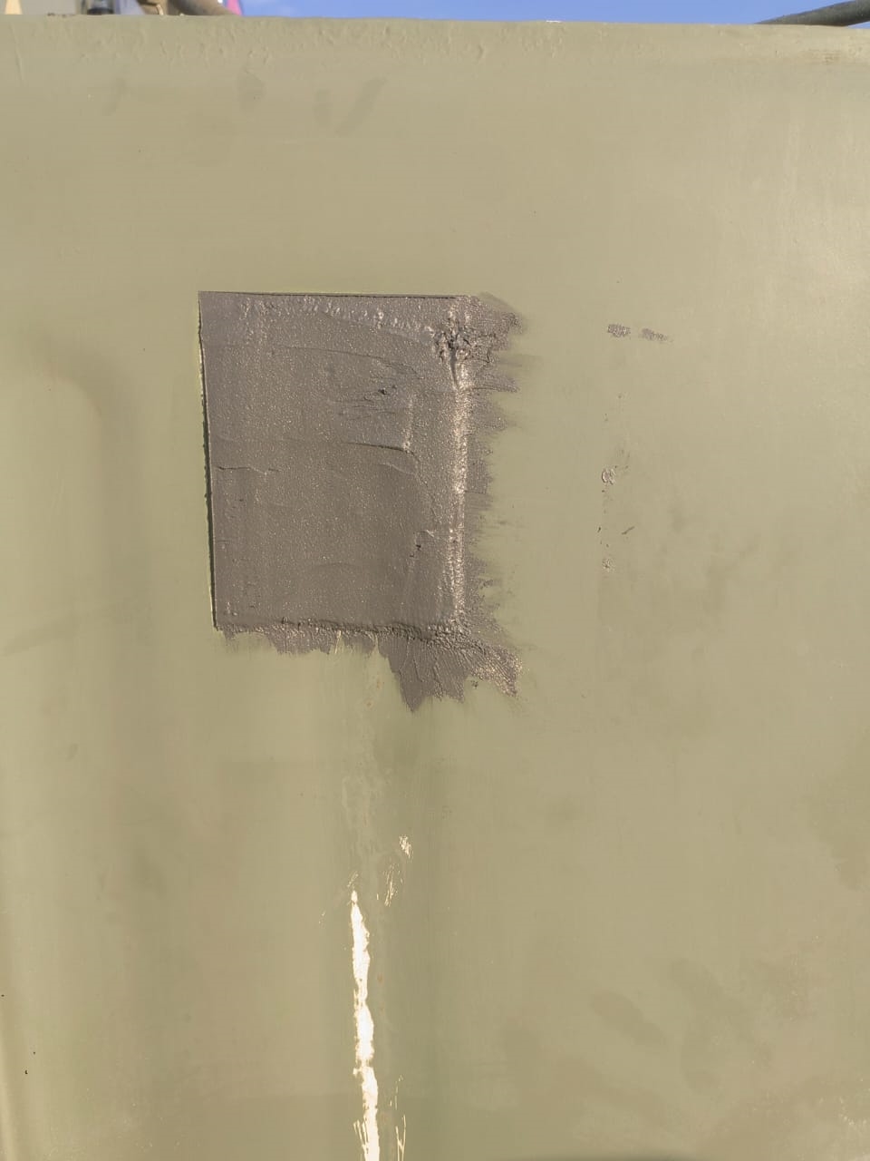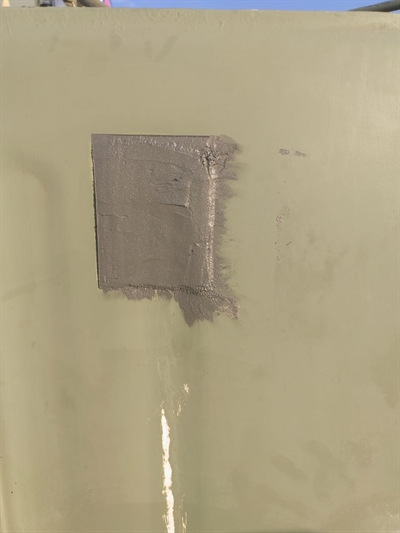2. Belzona 1212 with 9341 reinforcement sheet was applied to restore the surface and stop the leak.