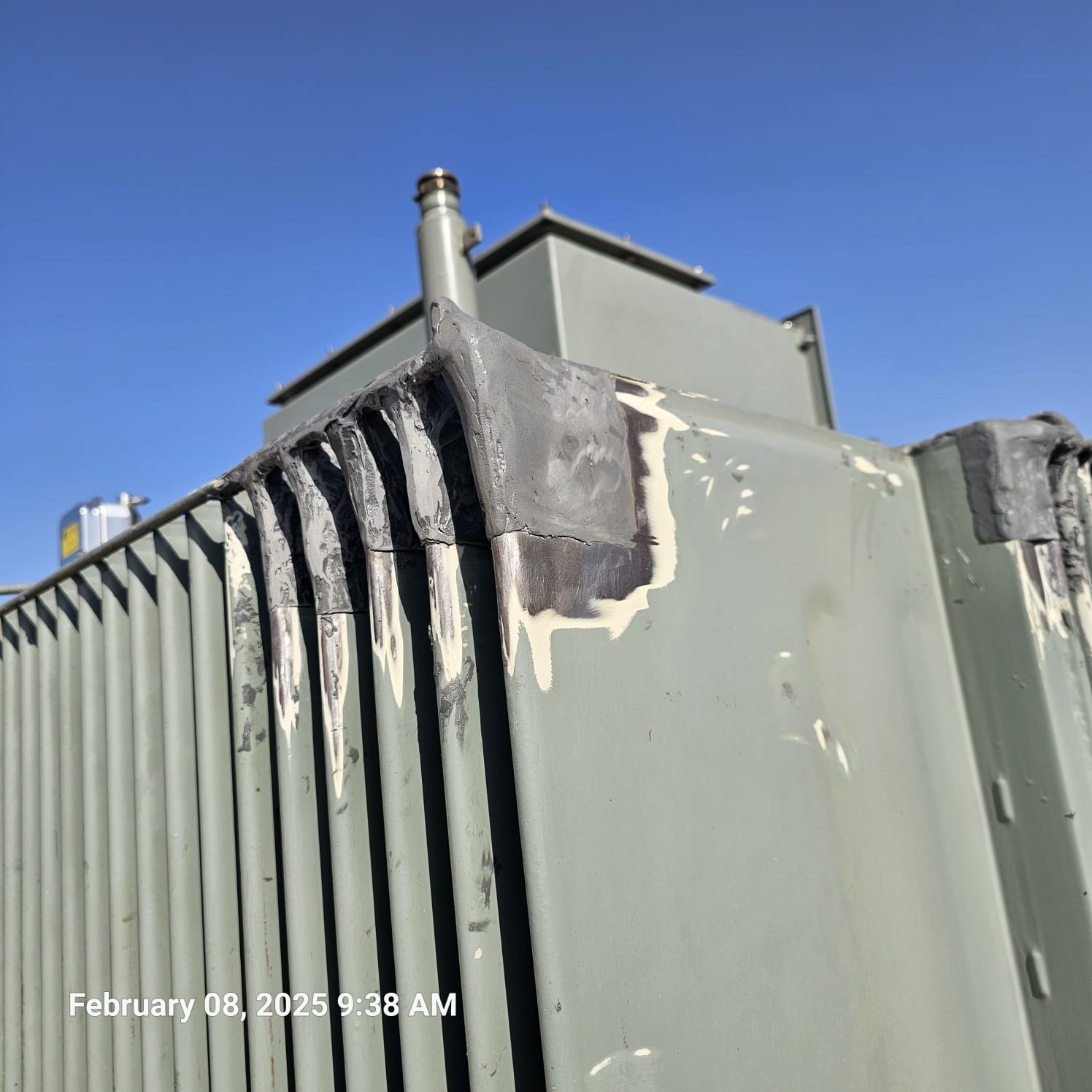 1. The leaking area on the transformer fin was thoroughly cleaned and abraded using power tools.