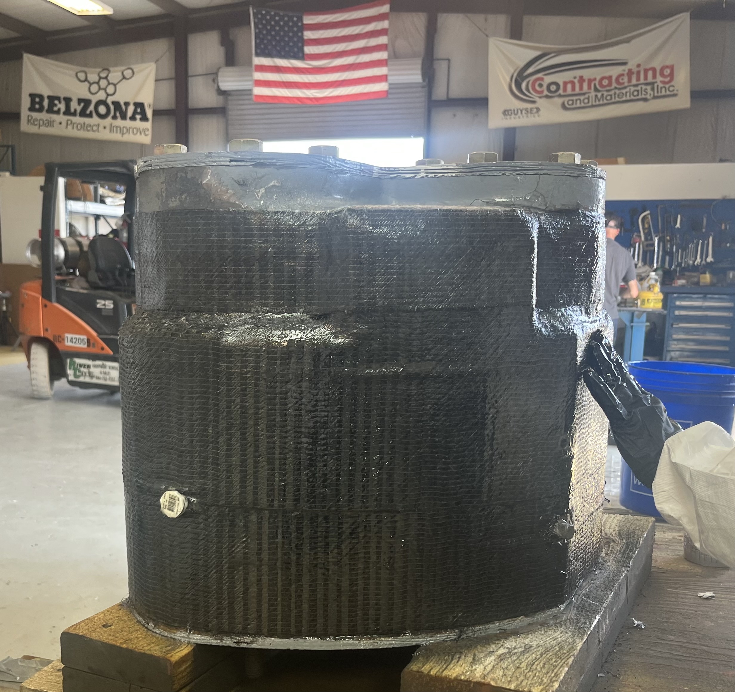 FINAL PHOTO SHOWS HOW WE WRAPPED THE ENTIRE VALVE BODY USING BELZONA 1984 AND CARBON FIBER SUPER WRAP. WE APPLIED 6 WRAPS TO THIS APPLICATION FOLLOWED BY BELZONA 9382 RELEASE FILM TO COMPRESS THE WRAPS AND 1984.