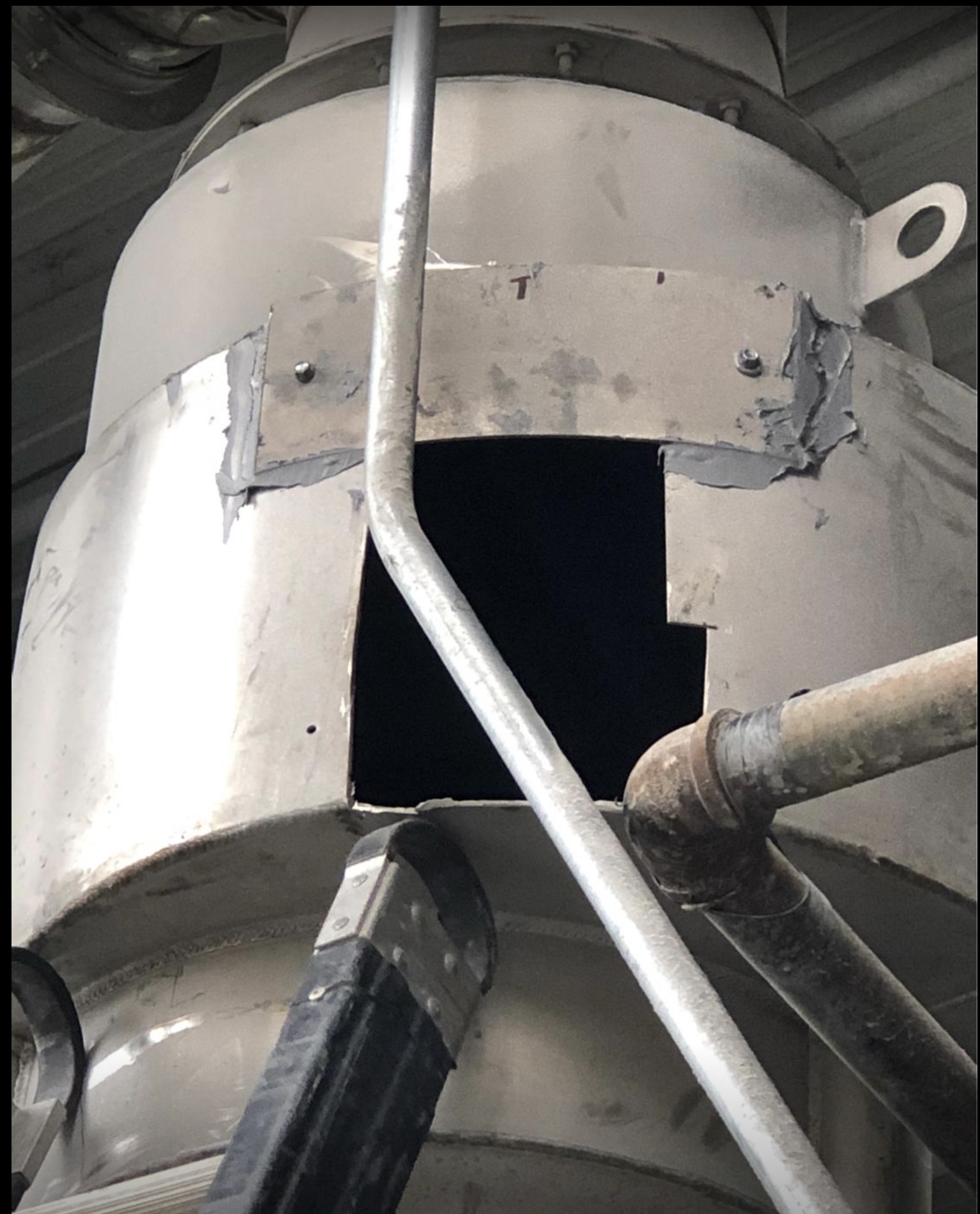The first picture is where the granules had eaten away the surface of the cyclone. We had to cut it out to make it a better sealing surface.