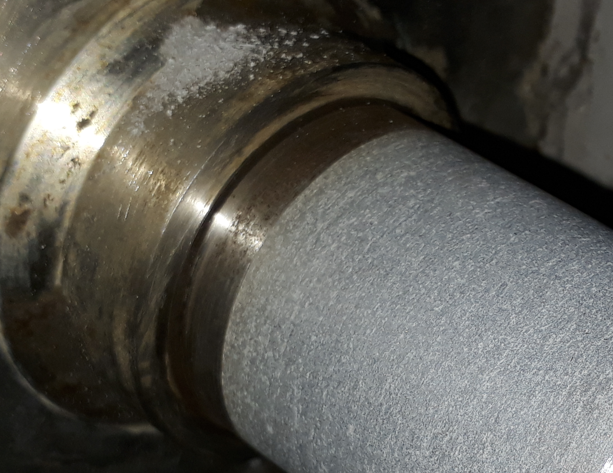 Damaged shaft, prepared using a grinder/cutting disc, then degreased and cleaned using Belzona 9111