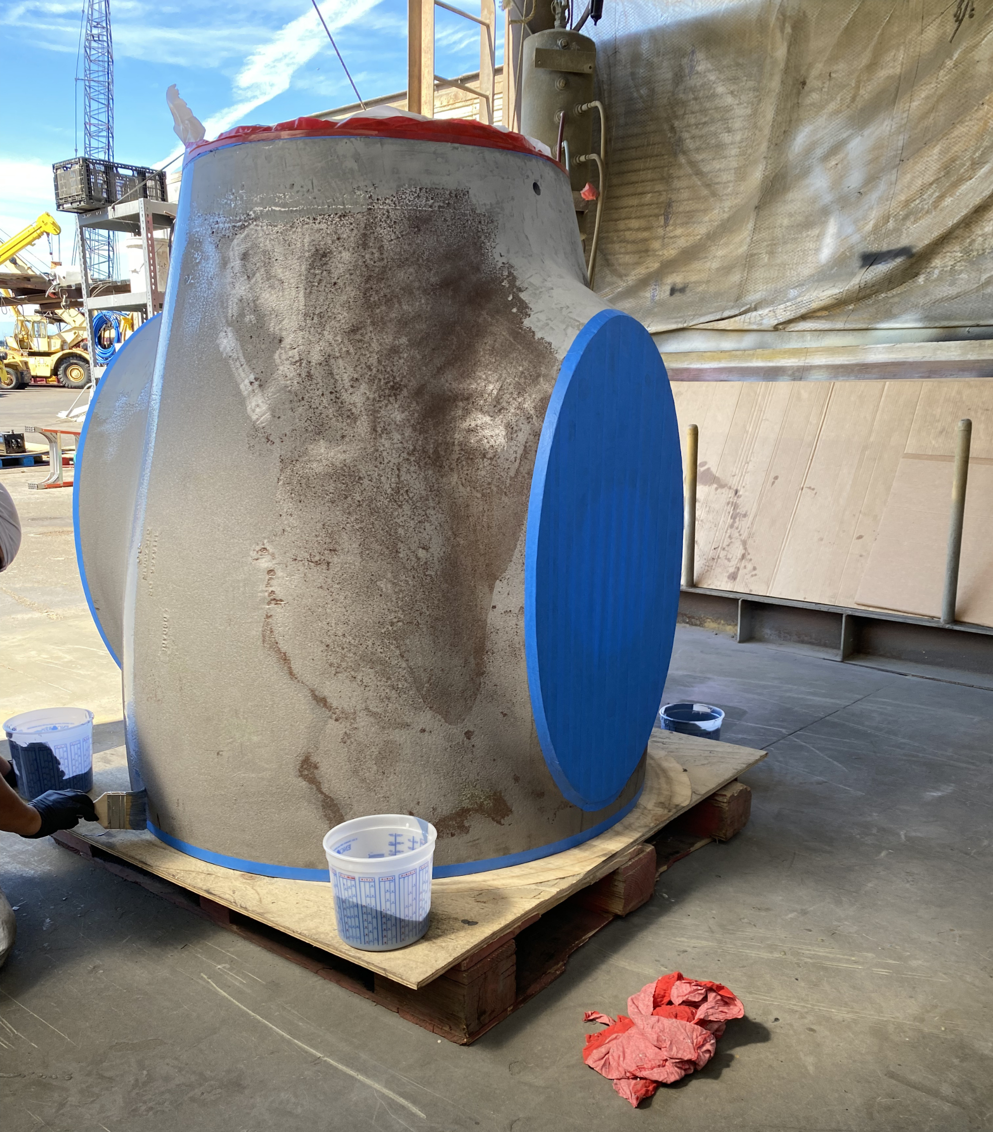 Belzona was selected for this repair due in part to the requirement for a coating system that met low-VOC environmental compliance standards. Belzona products are 100% solids formulations with zero VOC content, satisfying regulatory requirements without the need for special ventilation or environmental permitting considerations. Additionally, Belzona's cold-applied repair method eliminated the need for hot work on the steel nozzle, avoiding the safety risks, fire watch requirements, and potential heat distortion associated with weld buildup in a marine maintenance environment. The vessel's maintenance schedule demanded a rapid turnaround to minimize time out of service, and Belzona's application and cure characteristics allowed the nozzle to be rebuilt and protectively coated within a single drydock window. The cold-cure, zero-VOC system offered clear advantages over traditional weld repair and conventional marine coatings in terms of both regulatory compliance and operational efficiency.